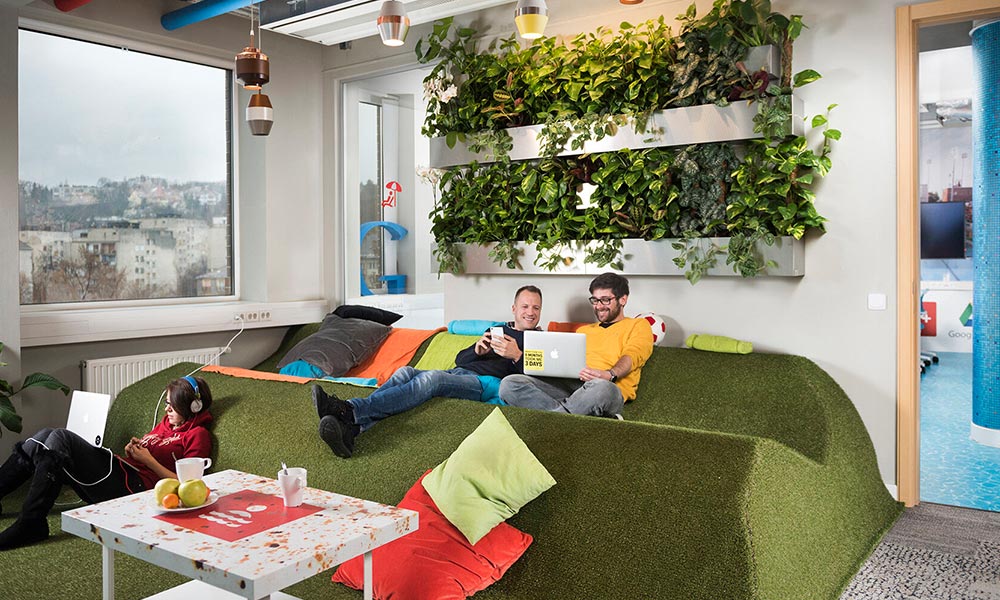 دفاتر کار گوگل معمولا بسیار خلاقانه دیزاین می شوند به گونه ای که پرسنل در این محیط آرامشی فراتر از انتظار دارند و می توانند با خیال آسوده به پیچیدگی های مسائل فنی مرتبط فکر کنندو اغلب راه حل های فنی مناسبی نیز برای این گزینه ها حاصل می شود.